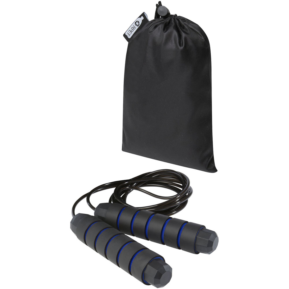 Professionelles Springseil für Erwachsene mit ergonomisch geformten Griffen aus weichem Schaumstoff, die einen festen und bequemen Halt während des Trainings bieten. Die Länge des Seils beträgt 310 cm, so dass Erwachsene mit einer Körpergröße von bis zu 195 cm problemlos hüpfen können. Das Seil ist in der Länge verstellbar und verfügt über ein hochwertiges, um 360° drehbares Hochgeschwindigkeitskugellager, das eine reibungslose und mühelose Drehung gewährleistet und ein Verheddern verhindert. Im Lieferumfang enthalten ist ein Aufbewahrungsbeutel (21 x 14 cm) aus recyceltem PET Kunststoff, der eine große Fläche für den Aufdruck eines Logos bietet.