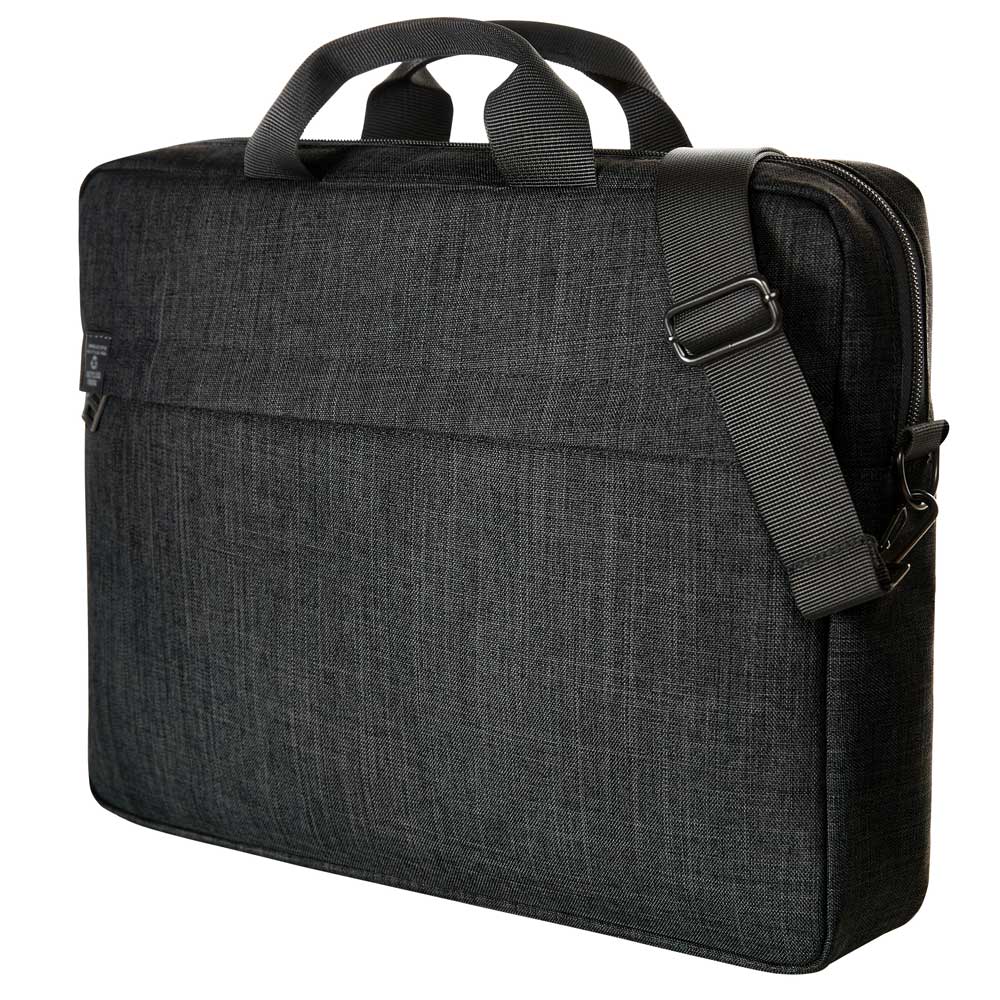 großes, rückseitig gepolstertes Hauptfach mit 2-Wege-Reißverschluss; rPET Obermaterial; wertige Metall-Accessoires; gepolstertes Einsteckfach z.B. für Notebooks; flache Reißverschluss-Vortasche; rückseitige Befestigung für Trolley-Gestänge; abnehmbarer, längenverstellbarer Schultergurt; Handgriffe