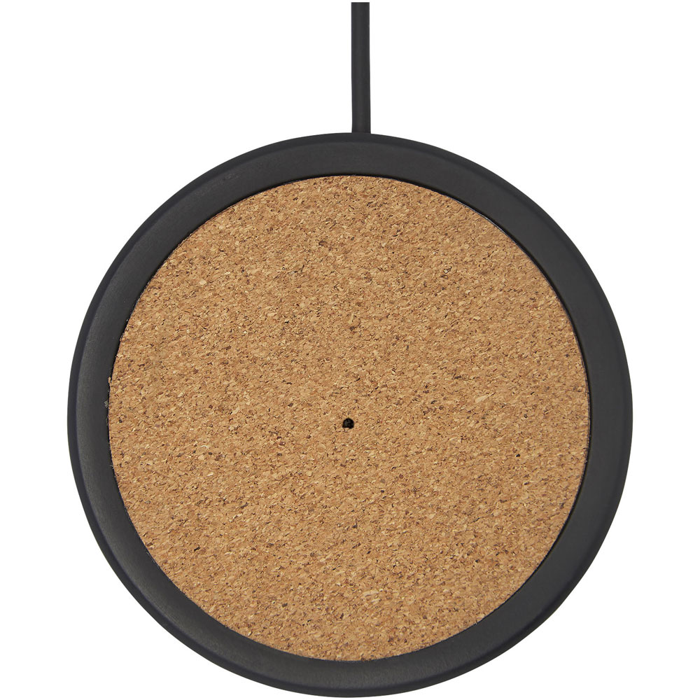 Kabelloses 10 W Ladepad aus einer Kombination von natürlichem Kalkstein und Kork. Um ein Gerät ohne drahtlose Technologie aufzuladen, wird ein externer Ladeempfänger oder ein Empfängergehäuse benötigt. Verpackt in einer Geschenkschachtel und wird mit einer Anleitung geliefert (beides aus nachhaltigem Material).