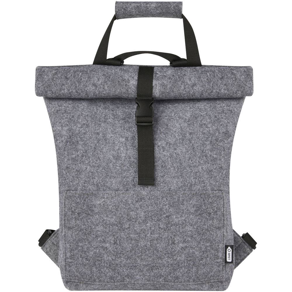 Multifunktionaler und modischer Rolltop-Rucksack und Fahrradtasche in einem. Aus hochwertigem, weichem und strapazierfähigem GRS-zertifiziertem, recyceltem Filz. Ausgestattet mit einem großen Hauptfach, einer Vordertasche, verstellbaren Schultergurten und 3 Klettverschlussgurten, mit denen die Tasche auf dem Gepäckträger eines Fahrrads befestigt werden kann. Die Schultergurte lassen sich leicht in ein langes Tragegriffsystem umwandeln oder so bündeln, dass sich die Gurte nicht in einem Fahrradrad verfangen können.