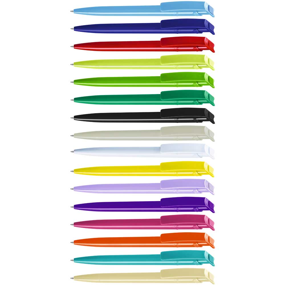 Druckkugelschreiber aus recyceltem rPET-Material in gedeckten Gehäusefarben. Die besondere Formgebung des Clipdrückers sorgt dafür, dass Ihre Werbung immer obenauf liegt. Das aus recycelten PET-Flaschen in Europa hergestellte rPET-Material eignet sich für einen langlebigen und nachhaltigen Werbeeinsatz. Dank der europäischen Produktion und dem Einsatz der langschreibenden uma Jumbomine, leistet der uma RECYCLED PET PEN einen zusätzlichen nachhaltigen Beitrag zur Schonung der Umwelt. Das Modell wurde mit dem Sustainability Award ausgezeichnet und für den Deutschen Nachhaltigkeitspreis nominiert.