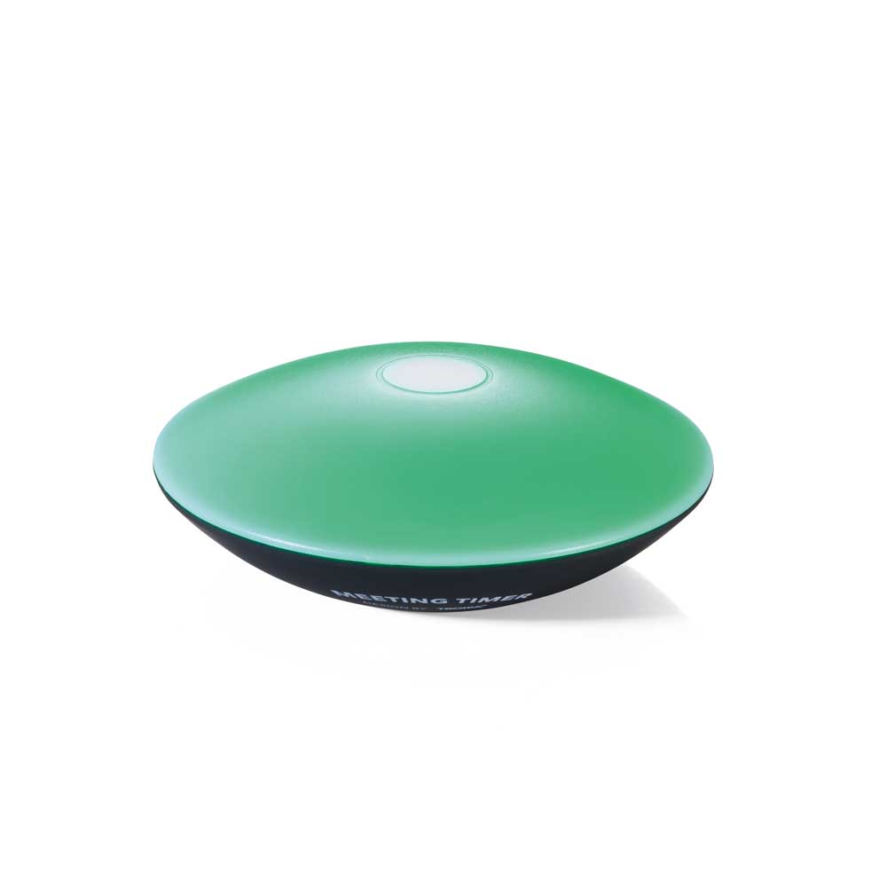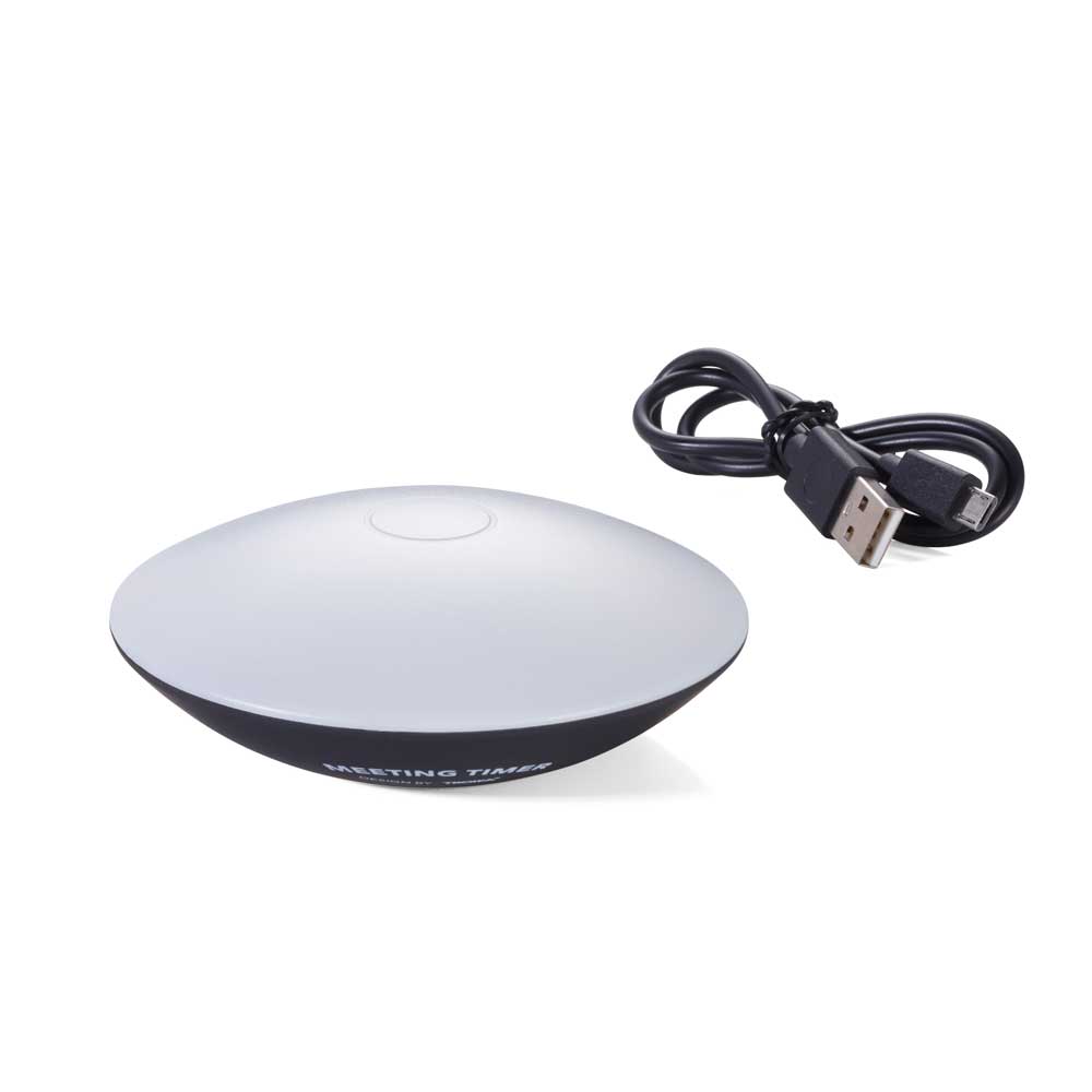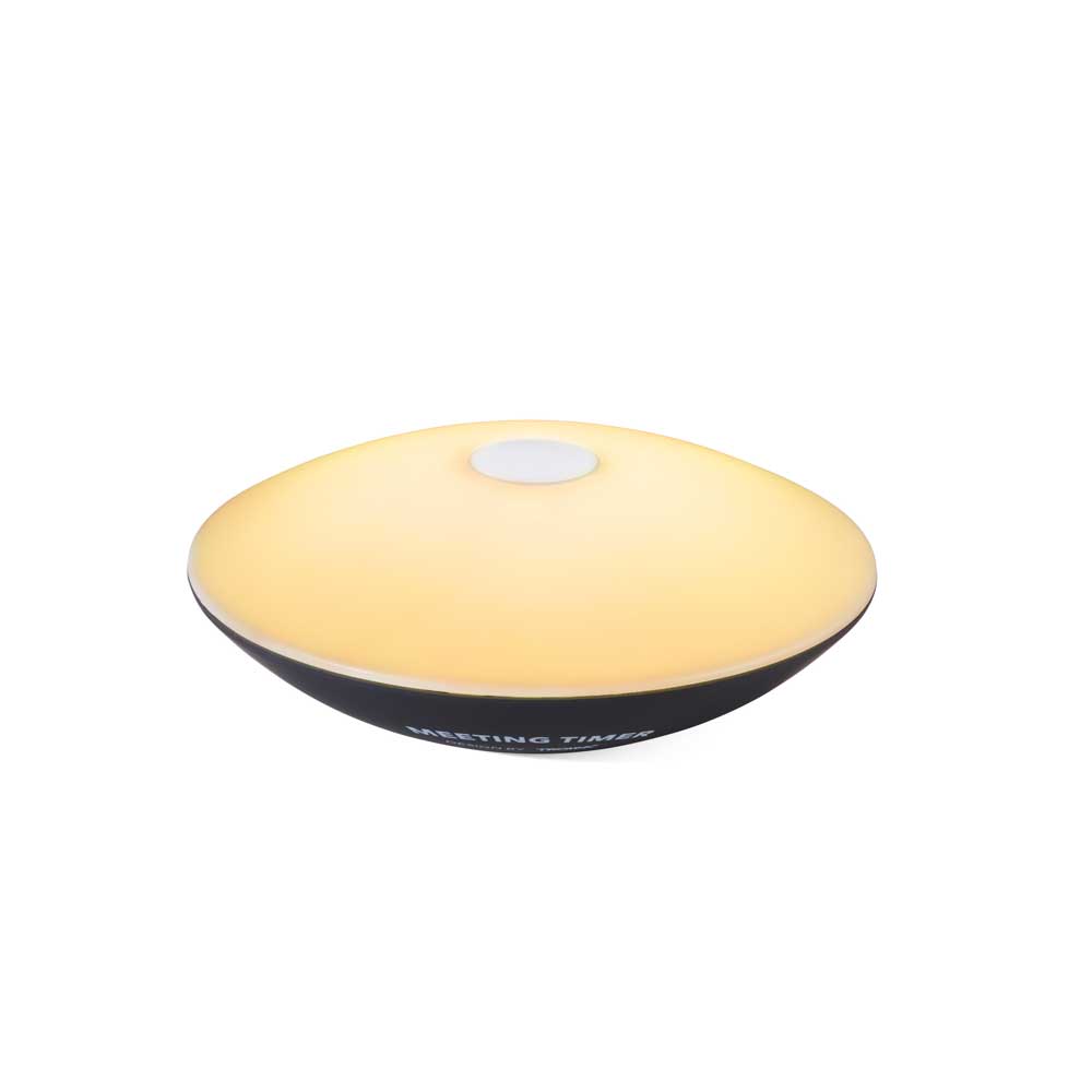 Meeting-Timer mit verschiedenen LED-Leuchtprogrammen, rund, als Sprechzeiten-Takter für erfolgreiches Zeitmanagement bei virtuellen oder Präsenz-Meetings, Vorträgen, Events oder als Lüftungsintervall-Timer für geschlossene Räume, 4 Signalfarben (weiß, grün, gelb, rot), manuell (Stimmungslicht) oder mit App zu bedienen (Ampel-System, Timer- oder Alarmfunktion), drahtlose Datenübertragung, umweltschonend da wiederaufladbar über USB, ABS, Kunststoff, matt, schwarz/weiß