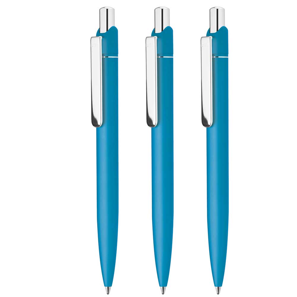 Metall-Druckkugelschreiber mit matt lackiertem Aluminium-Schaft. Metallclip und Drücker silber glanzverchromt.