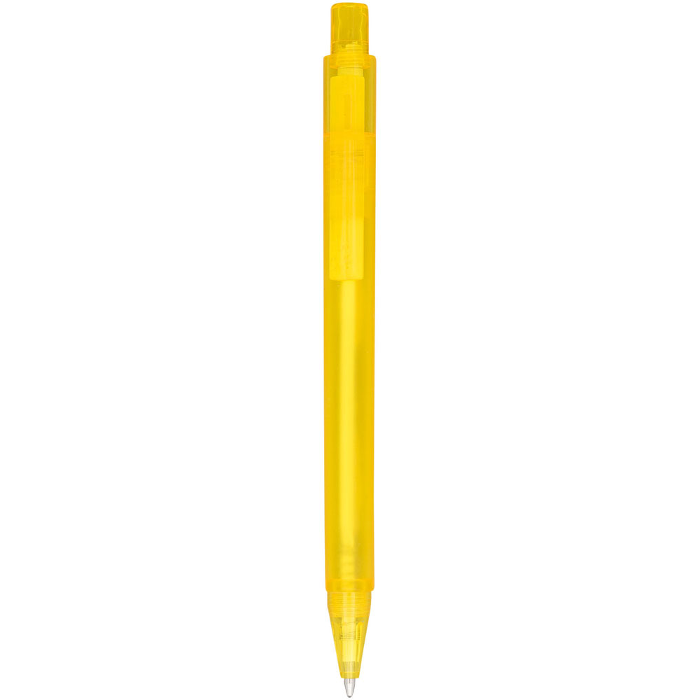 Der mattierte Calypso Kugelschreiber hat einen trendigen mattierten farbigen Schaft und einen großartigen Werbeanbringungsbereich für Ihr Logo.