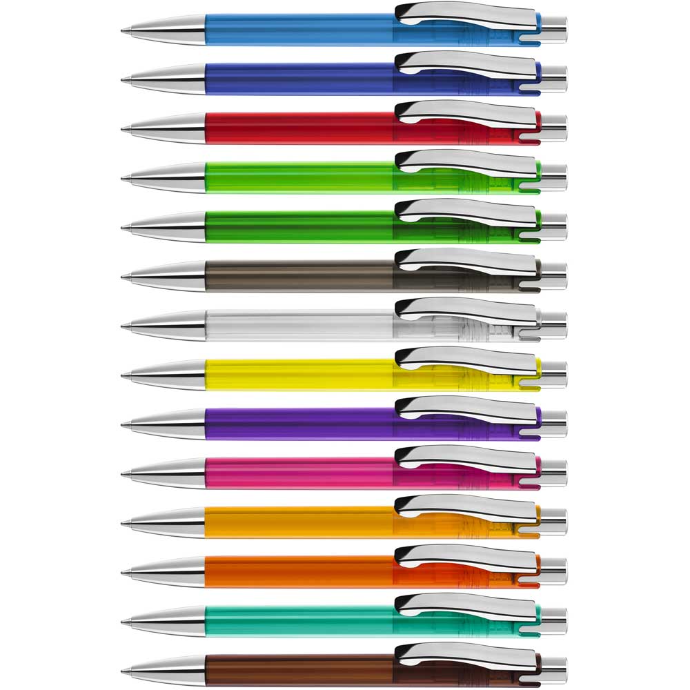 Druckkugelschreiber mit transparent glänzendem Gehäuse, schwerer Metallspitze,... mehr