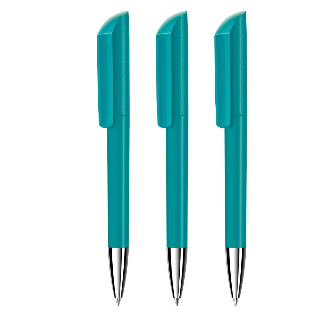 Drehkugelschreiber unifarben mit gummiertem Gehäuse und gedeckt glänzendem Clip. Spitze glanzverchromt.