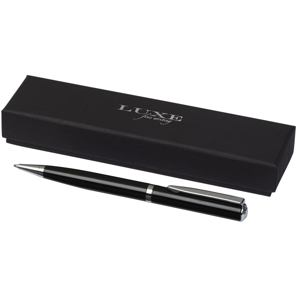 Der lackierte Kugelschreiber kommt mit einem exklusiven Design und mit silberfarbenen Details. Inklusive einer hochwertigen schwarzen Mine und verpackt in einer „LUXE“-Geschenkschachtel (16 x 4,5 x 2,8 cm).