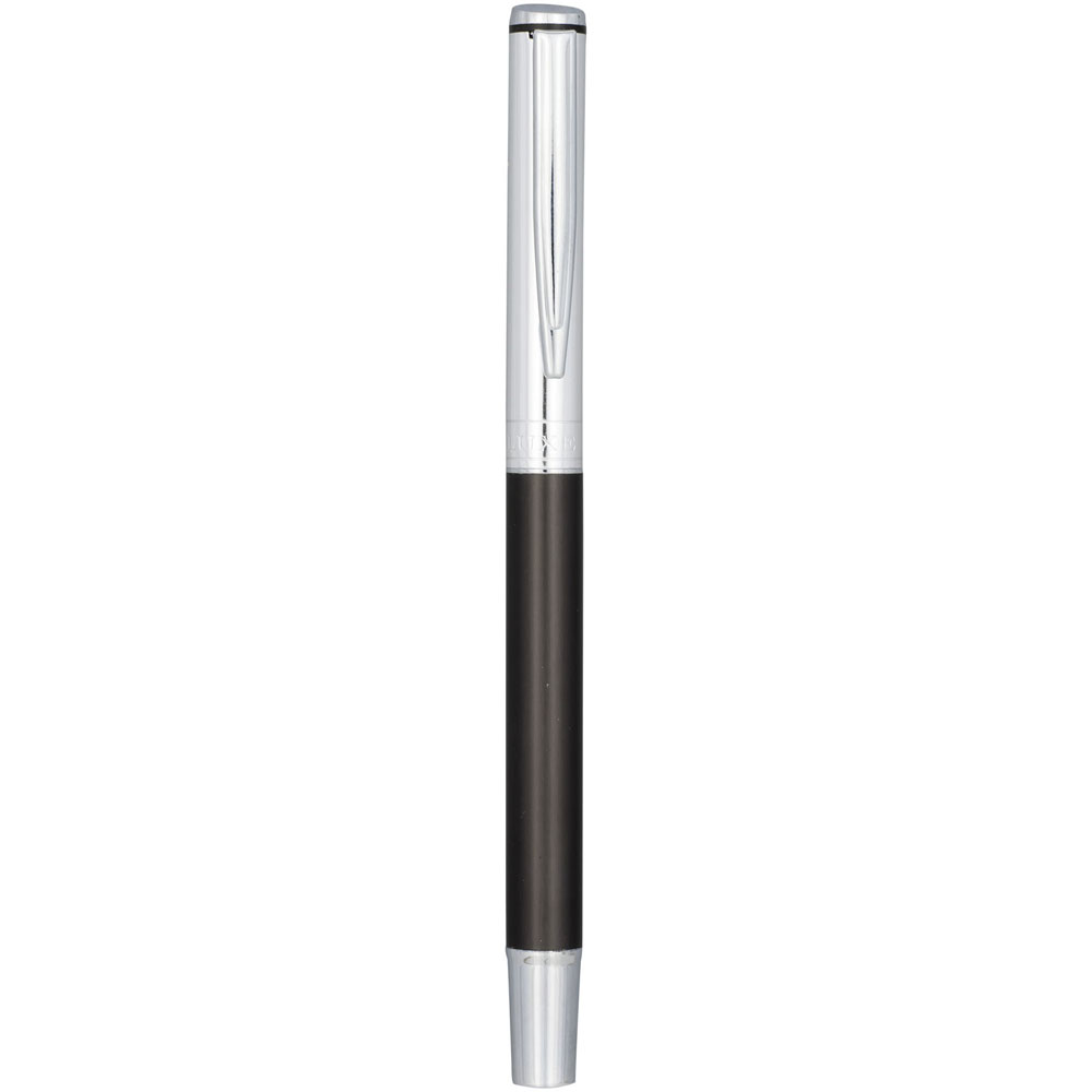 Stiftset im exklusiven Design mit einem Stylus-Kugelschreiber und einem Rollerball-Stift. Beide Stifte verfügen über einen unteren Schaft aus Graphit, der durch einen polierten verchromten oberen Schaft ergänzt wird. Mit schwarzer Premium-Mine und gummierte Stylus-Spitze, ideal für Touchscreens wie Tablets und Smartphones. Verpackt in einem „LUXE“-Geschenkkarton (17 x 5,5 x 3 cm).
