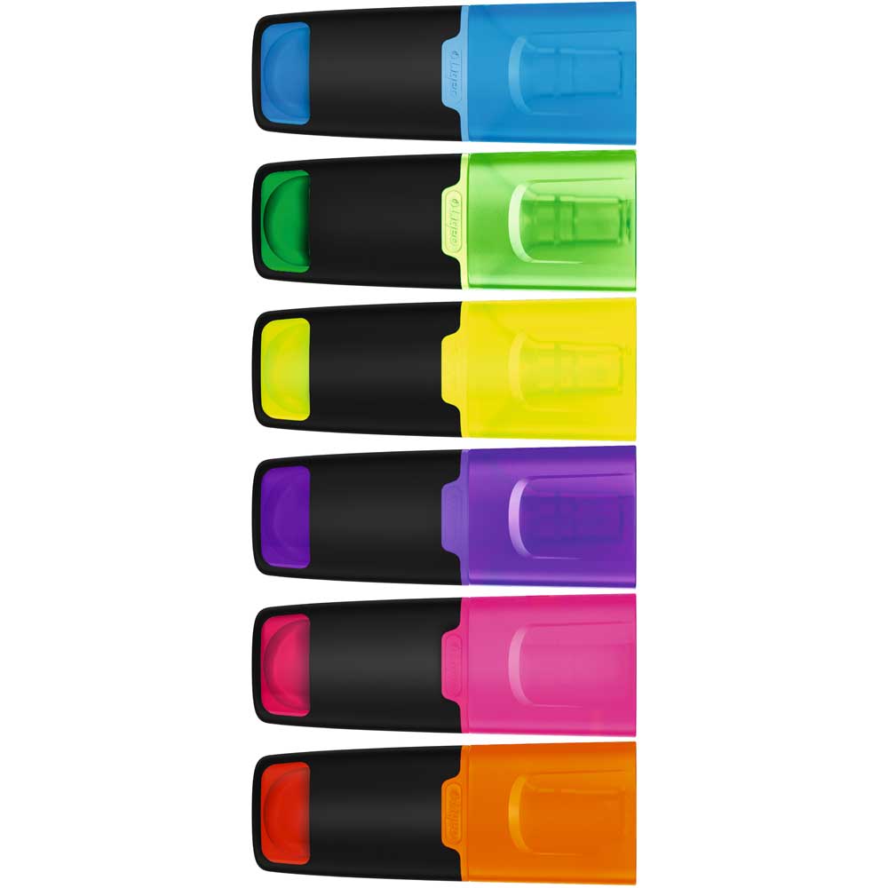 Mini Flüssig-Textmarker mit schwarzem Schaft und transparenter Kappe in Schreibfarbe. Ohne Pumpen oder Anstechen sofort einsatzfähig. Neues Flüssigtintenleitsystem - Bessere Schreibqualität - Höhere Leuchtkraft - Längere Schreibdauer - Umweltfreundlicher - Produziert nach EN-71, ASTM D-4236