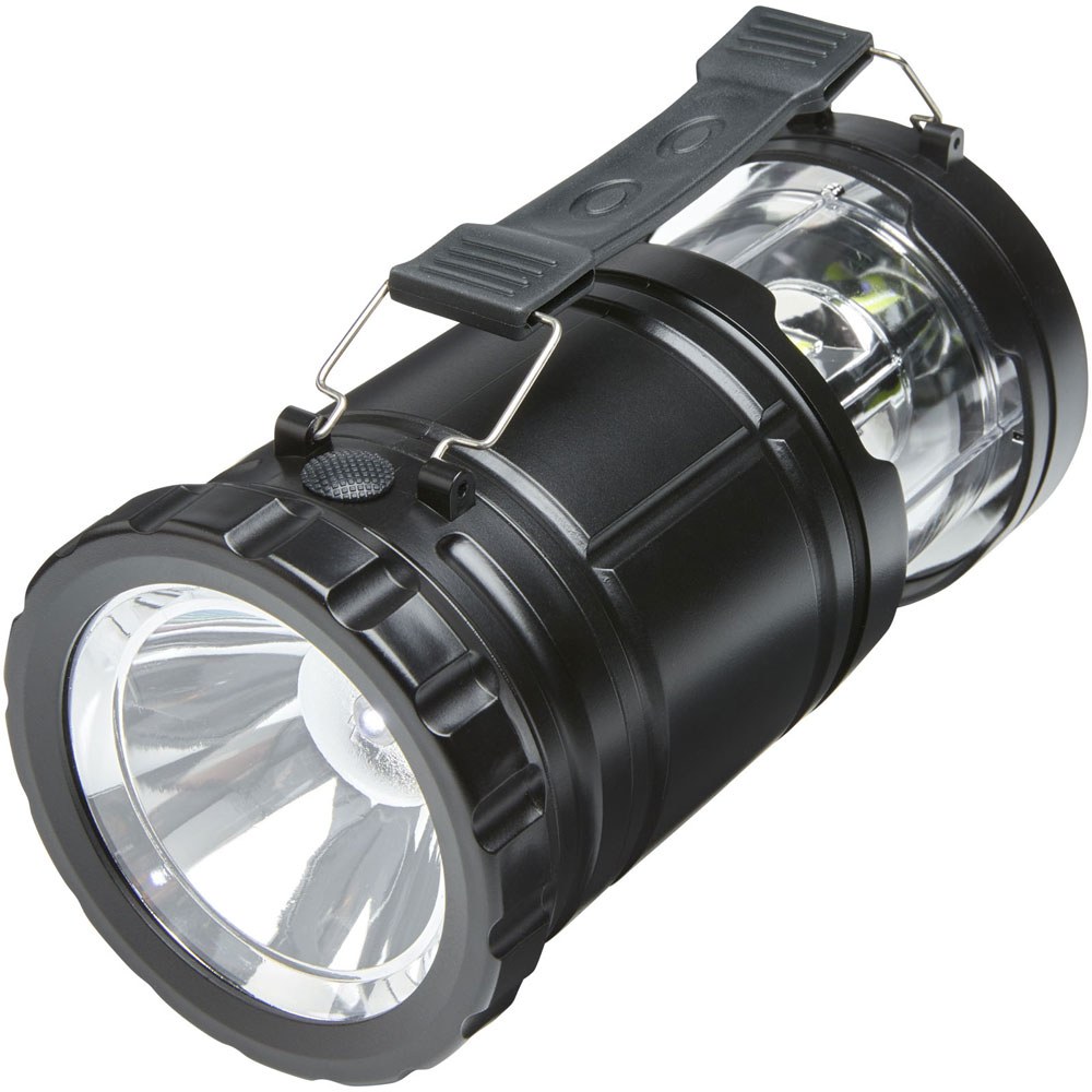 Dieses 2-Funktions-Licht ist ideal beim Camping oder wenn Sie beim Heimwerken starkes Licht benötigen. Im ausgezogenen Zustand dient sie als Laterne und umgedreht als Taschenlampe, wenn man den abnehmbaren und praktischen Griff verwendet. Die COB mit 3W erzeugt 240 Lumen und die LED mit 1 W 100 Lumen. Beide Lampen haben eine Leuchtdauer von 4,5 Stunden und eine Leuchtweite von 100 Metern. Die hohe Leistung kommt von 3 x AA Hochleistungsbatterien (im Lieferumfang enthalten). Wird mit Bedienungsanleitung geliefert und ist in einer Geschenkbox aus recyceltem Karton verpackt, Größe 13,4 x 9 x 9 cm.