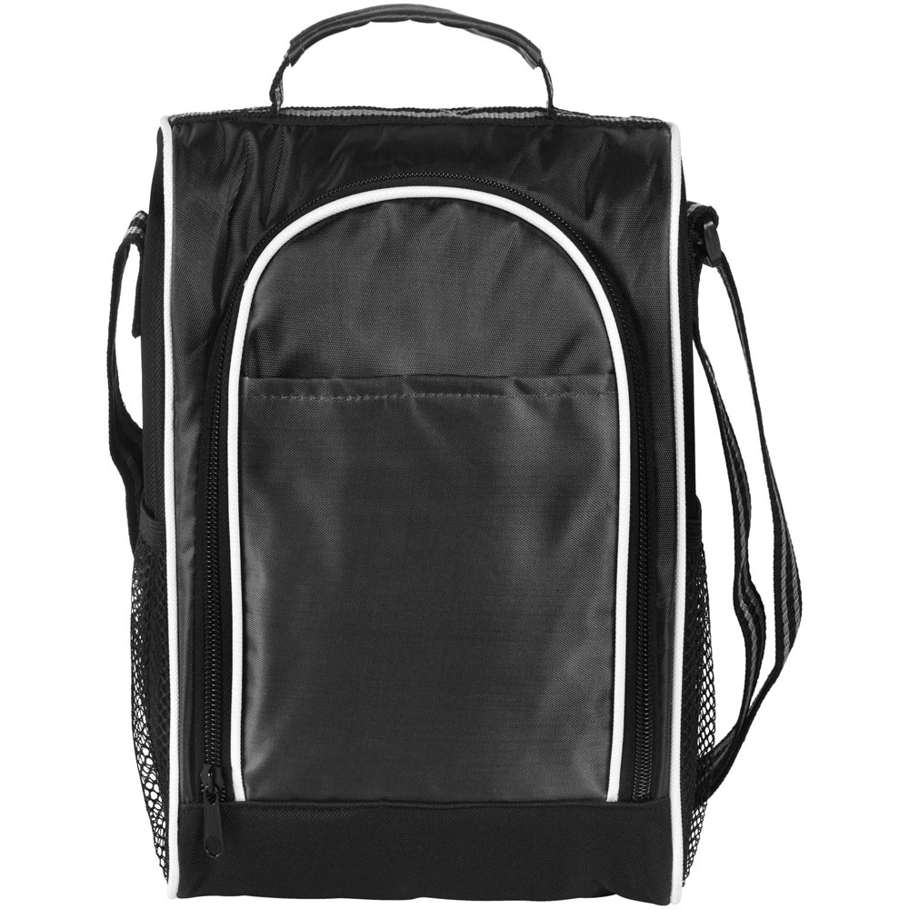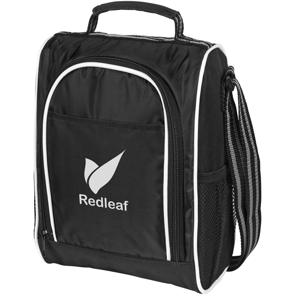 Eine praktische und haltbare Lunchtasche mit isoliertem Hauptfach mit Reißverschluss und Netztaschen an den Seiten. Sie verfügt außerdem über einen kurzen Tragegriff und einen praktischen einstellbaren Schulterriemen.