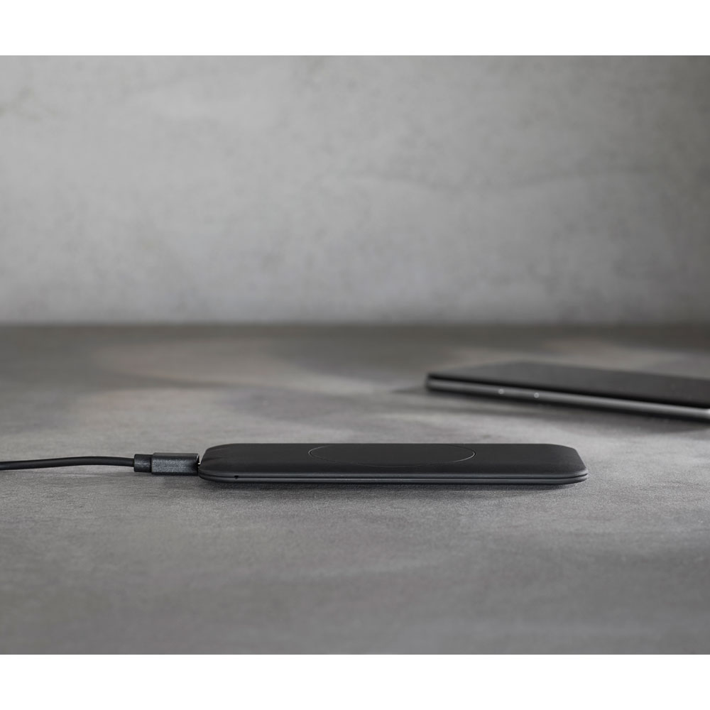 Diese drahtlose, Qi- zertifizierte, induktive Ladestation lädt Ihre Endgeräte nicht nur schnell mit bis zu 15 Watt; sie liegt mit nur 7 mm Dicke auch fast unsichtbar unter Ihrem Telefon.