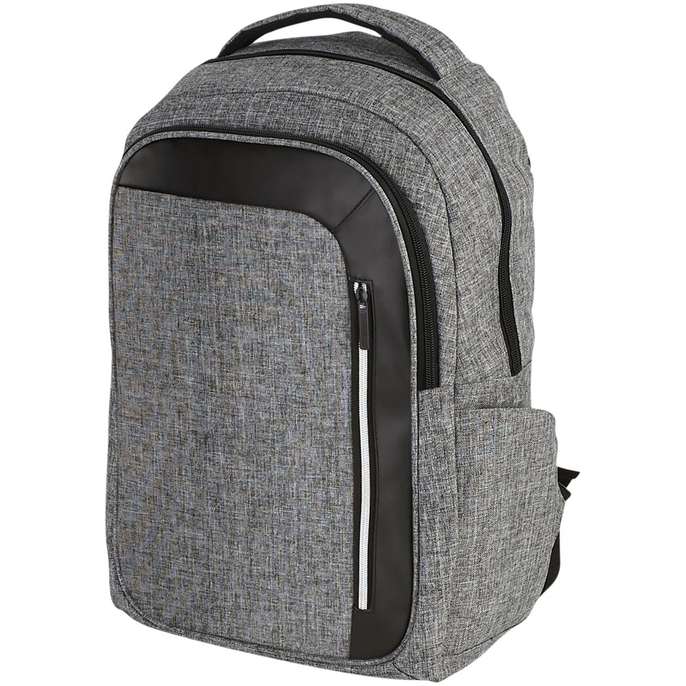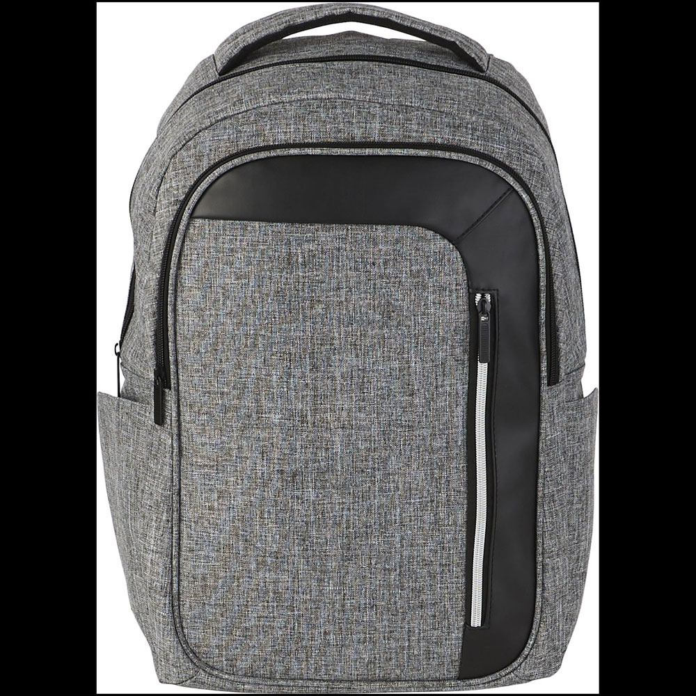 Eleganter, moderner 15" Laptoprucksack bietet eine große Tasche auf der Vorderseite mit Reißverschluss, Schlüsselanhänger und versteckte RFID-Block Technologie für Ihre Karten und Reisepass, um vor Identitätsdiebstahl zu schützen. Das große Reißverschluss Haupfach ist für ein 15" Laptop und bietet ein separates gepolstertes Fach für IPad oder Tablet. Der vordere vertikale Reißverschluss soll Ihnen einen schnellen Zugriff auf die Vordertasche geben. 2 zusätzliche Seitentaschen bieten weiteren Stauraum und die verstellbaren, gepolsterten Schultergurte mit Gewebedetails sind bequem und erlauben Ihnen weitere Reiseutensilien anzuclippen. Der Tragegriff und die Trolley Befestigung machen das Reisen einfach. Es kann zu geringfügigen Farbveränderungen des eigentlichen Produkts kommen, die auf die Beschaffenheit der Gewebefarbstoffe, Gewebe und Drucke zurückzuführen sind.