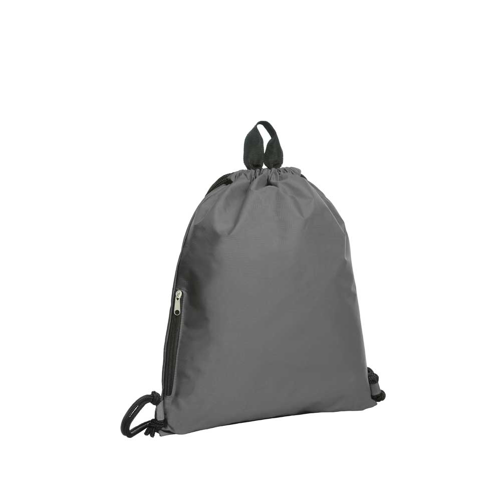 großer Zugbeutel-Rucksack; Hauptfach mit seitlicher Reißverschluss-Tasche; Kordelzug; Trageschlaufe