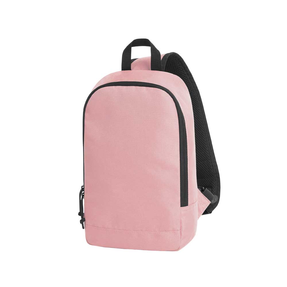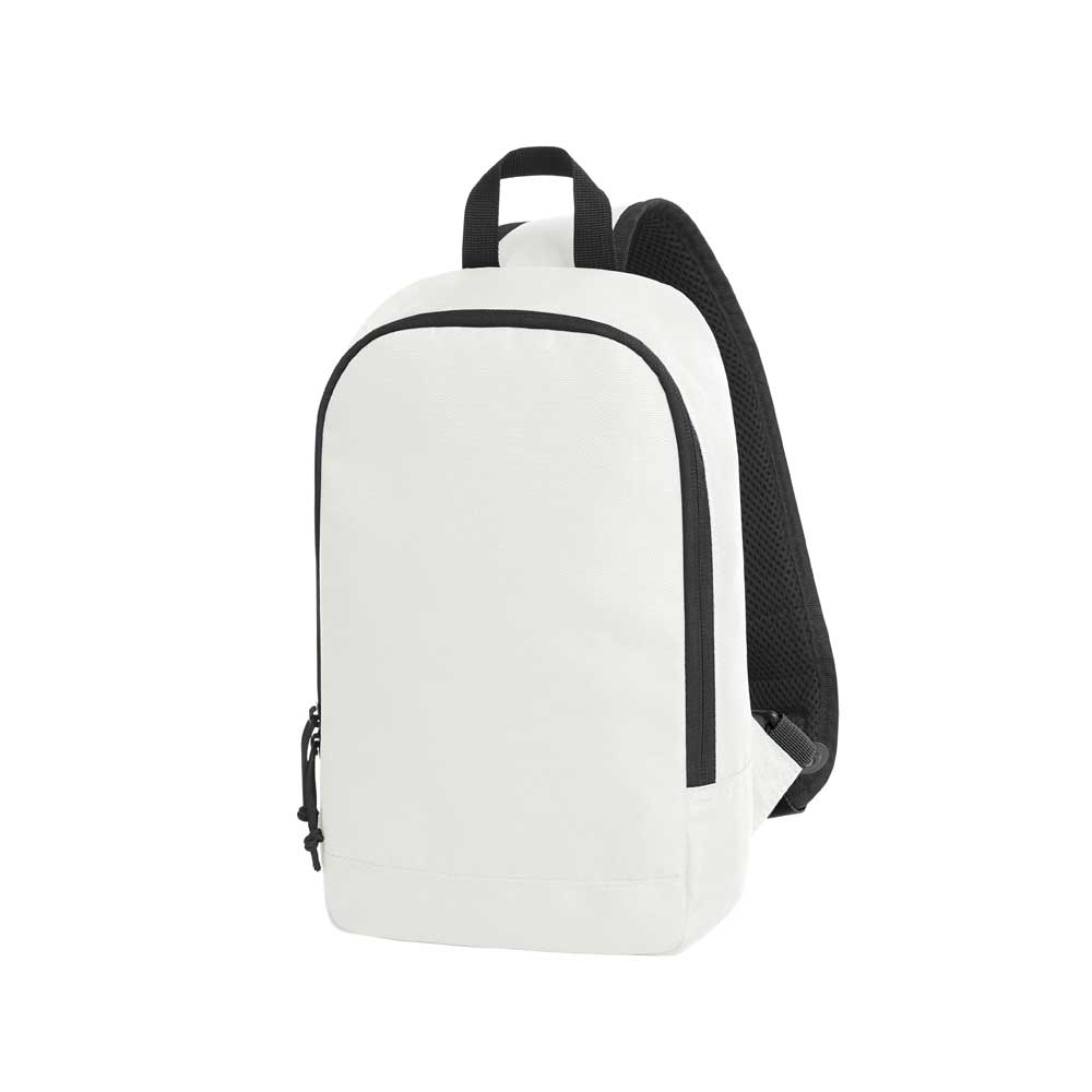 moderner Monostrap-Rucksack; Hauptfach mit 2-Wege-Reißverschluss; flaches Einsteckfach innen; rückseitiges Reißverschlussfach; gepolsterter, längenverstellbarer und beidseitig tragbarer Schultergurt; Trageschlaufe