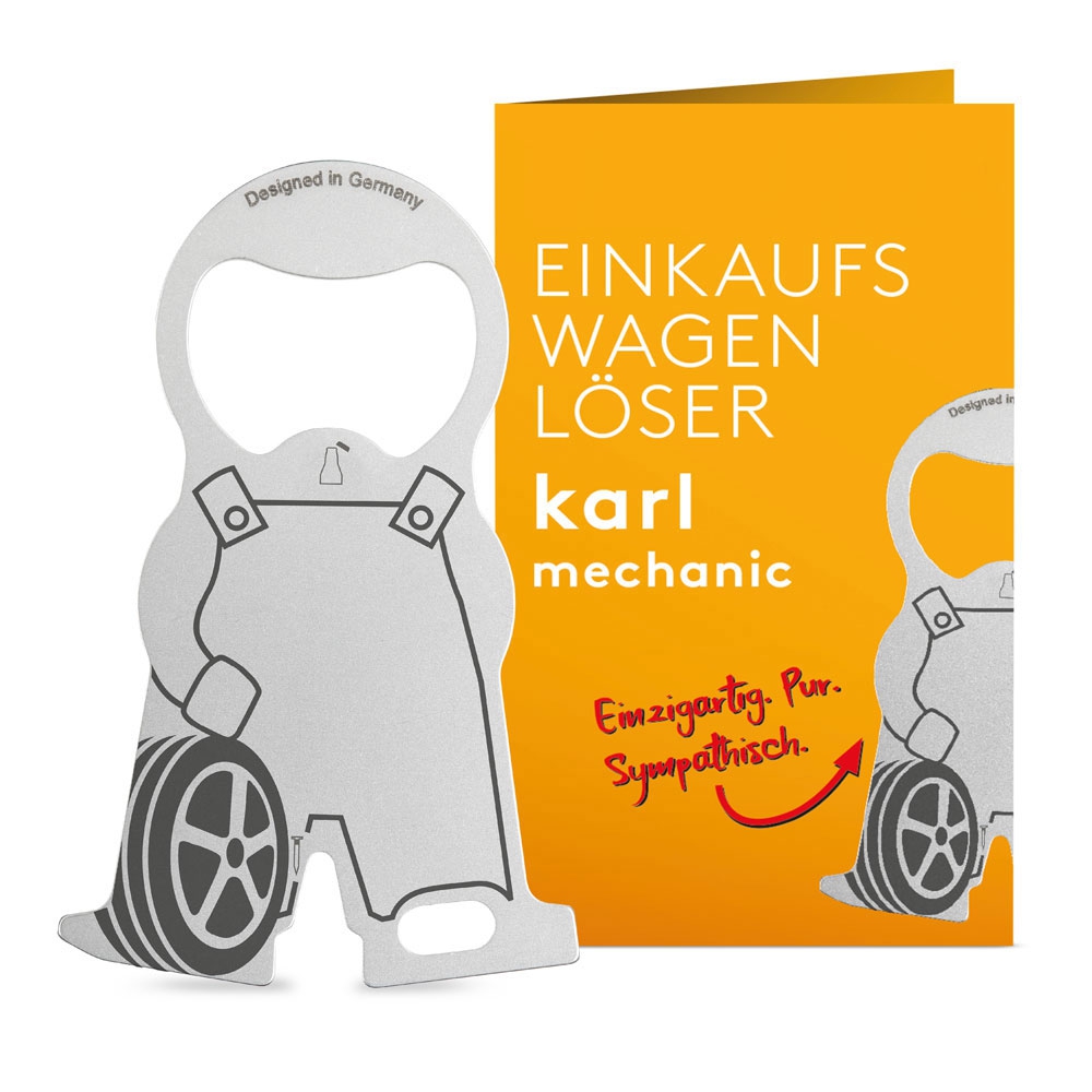 Werbemittel Einkaufswagenlöser Karl Mechaniker