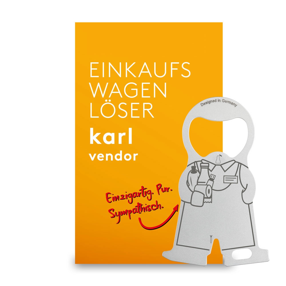 Werbemittel Einkaufswagenlöser Karl Verkäufer