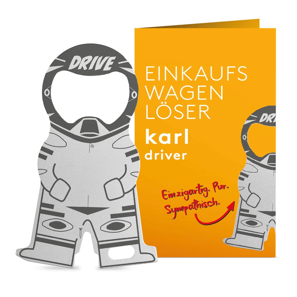 Der ultraflache Einkaufswagenlöser überzeugt durch seine sympathische und handliche Form. Mit der einzigartigen Kombifunktion aus Flaschenöffner und Einkaufswagenlöser auf kleinstem Raum, wird er schnell zum unverzichtbaren Begleiter am Schlüsselbund.