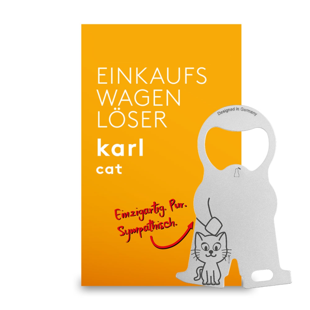 Werbemittel bedrucken - Einkaufswagenlöser Karl Katze